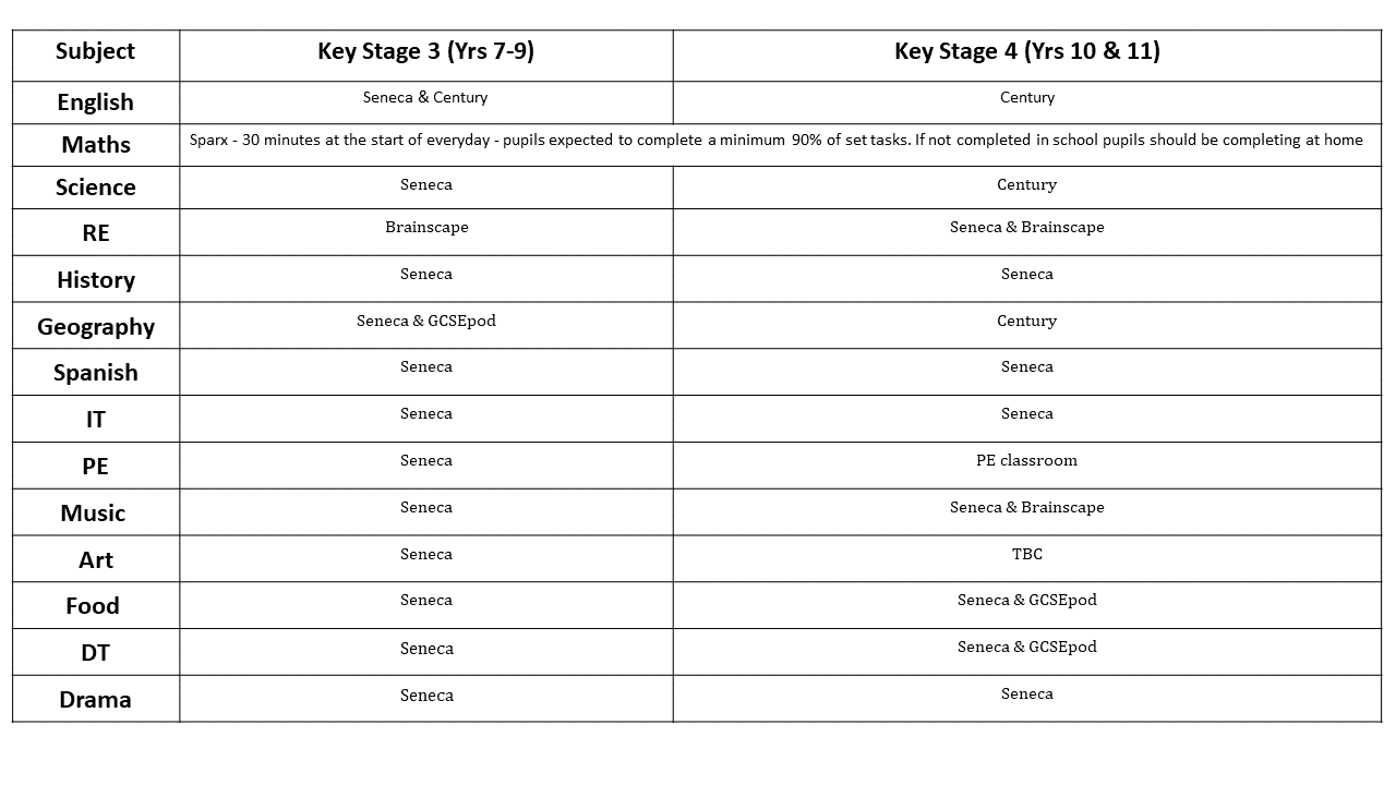 Pupils are expected to complete independent learning using the following digital platforms each week: